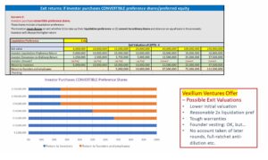 Below are worked examples of the exit valuations showing the returns that the investor will get based on their liquidation preferences, along with summary comments on each term sheet, written by David Gill. You can compare them with your own thoughts. Try not to look until you have made your own assessment.